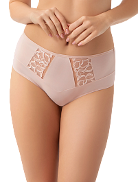 Классический бежевый бюстгальтер, украшенный тонким уружевом на сетке.